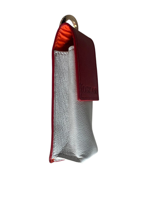 Beyaz Kırmızı Manyetik Kapaklı Deri Ruj ve Dudak Balsamı Kılıfı