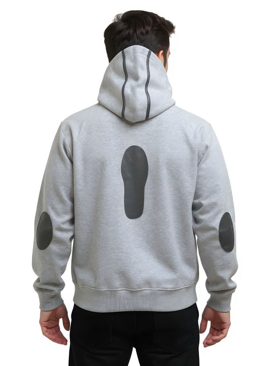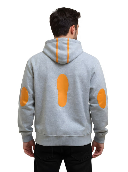 Deri Detaylı Kapşonlu Sweatshirt - Gri Renk | Toskana Design