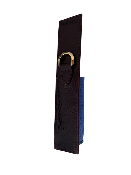 Bordo Mavi Manyetik Kapaklı Deri Ruj ve Dudak Balsamı Kılıfı