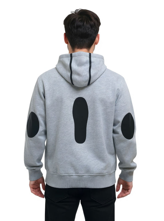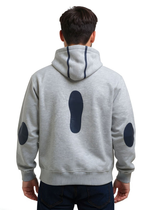 Deri Detaylı Kapşonlu Sweatshirt - Gri Renk | Toskana Design