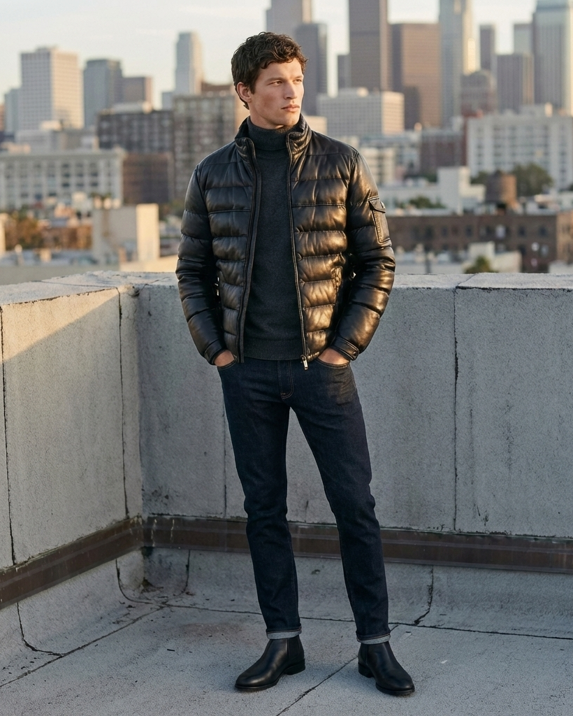Toskana Design Siyah Erkek Puffer Deri Kaban Style 200-4059