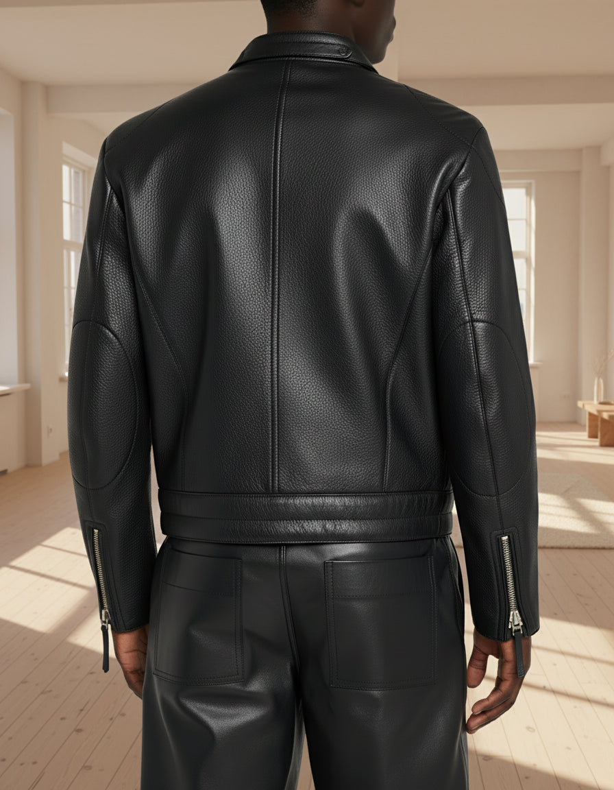 Kapitone astar ve dolgu, bu klasik biker ceketin yapısını güzelleştirerek konfor katar.